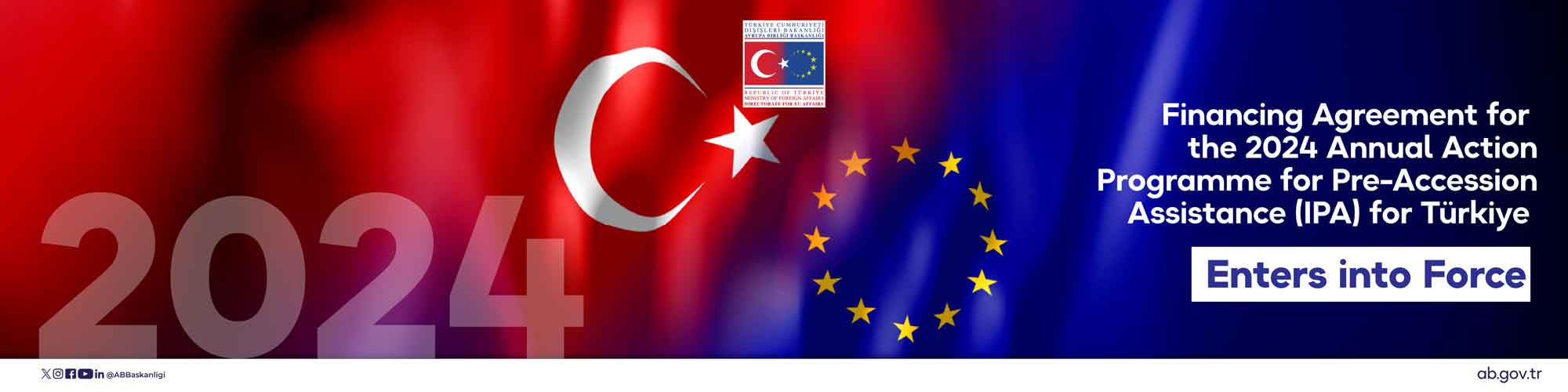 “The Financing Agreement on the Annual Action Programme for Türkiye for the Year 2024” was published in the Official Gazette dated 19 December 2025, No. 33112 and entered into force on 22 December 2025. With the Agreement’s entry into force, it will be possible to finance the projects and programmes included under the 2024 programming of the Instrument for Pre-accession Assistance (IPA III) covering the period 2021 – 2027, through the funds to be transferred to Türkiye by the European Commission.